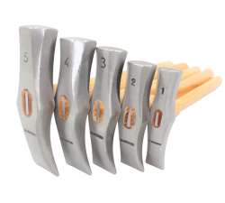 Acier forgé poli, manche verni N°1 : Poids : 175 g / Longueur : 26,5 cm / Diamètre de frappe : 19 mm / Longueur de la tête : 90 mm N°2 : Poids :...